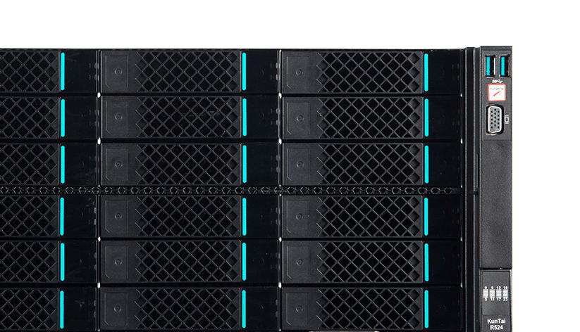 KunTai R524 存储型服务器是PA视讯数码基于鲲鹏处理器推出的新一代 ARM数据中心服务器。主要面向存储业务,具有海量存储、高性能、低功耗以及易扩展的特点,适合为大数据分析、软件定义存 储等应用场景的工作负载进行髙效加速。